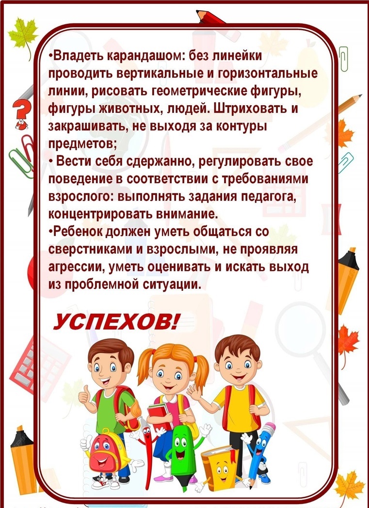 4. В 1 класс принимаются дети, достигшие возраста 6 лет 6 мес. - 7 лет (по состоянию на 01.09.2025г.), но не позже достижения ими возраста восьми лет при отсутствии противопоказаний по состоянию здоровья.