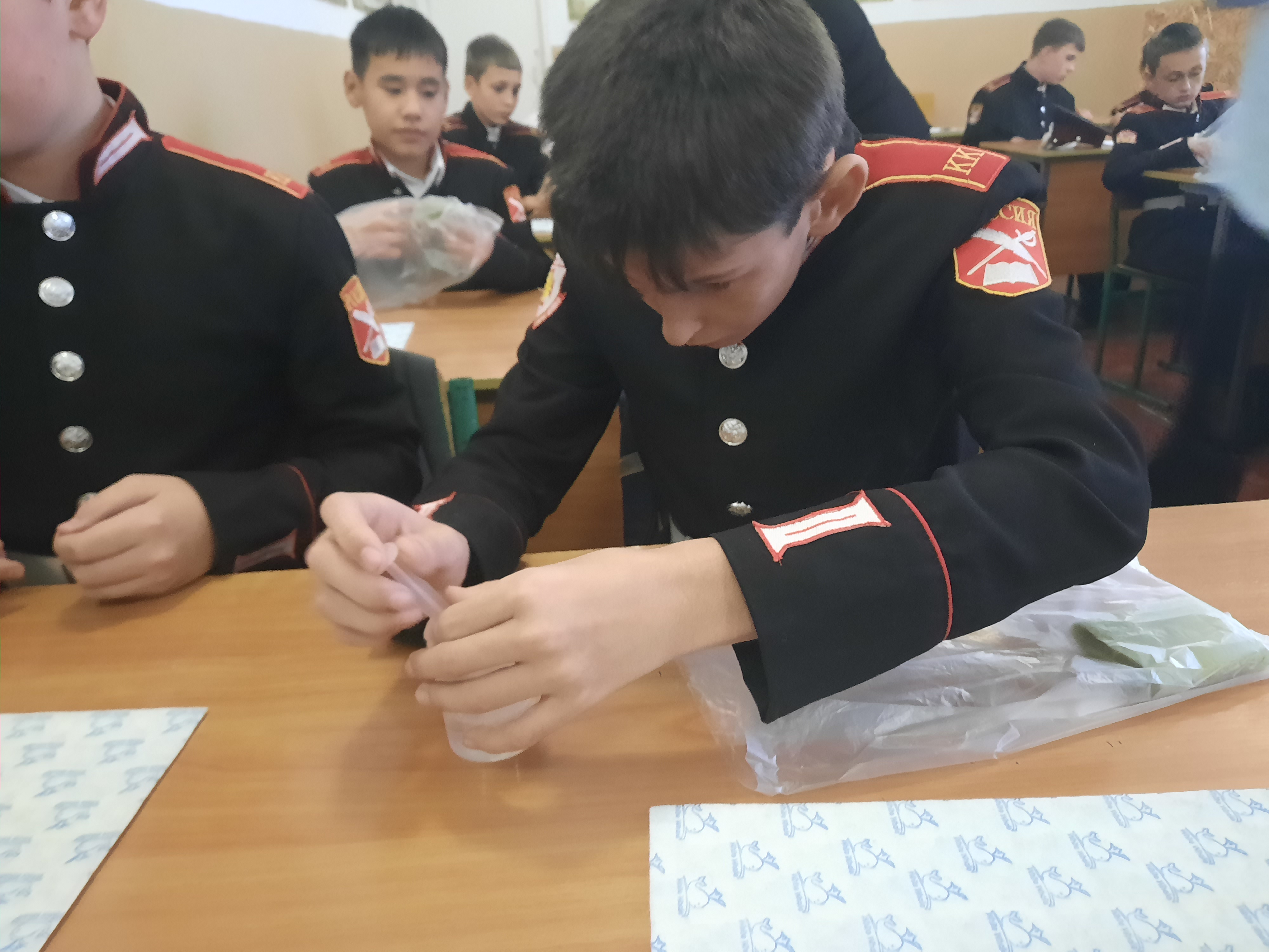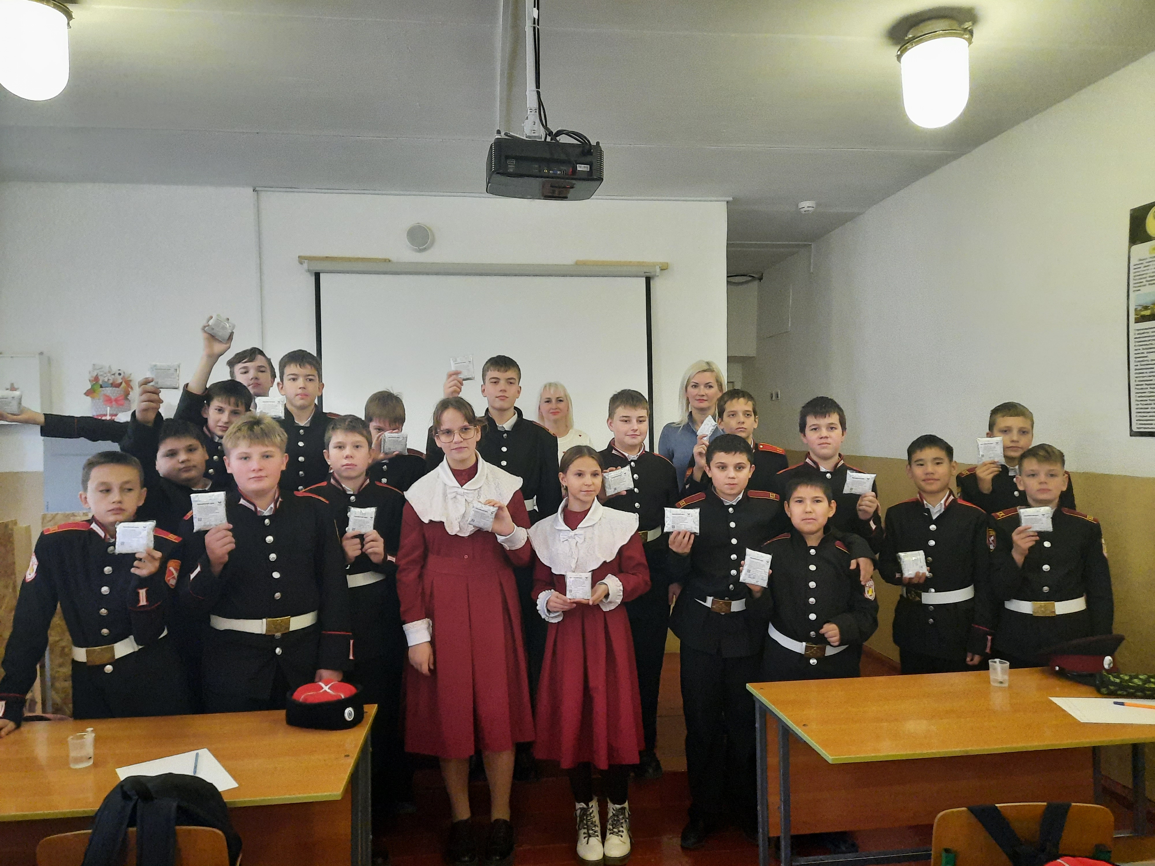 Сегодня в гостях у кадетов казачьих классов МБОУ «Табачновская СОШ имени Н.Г. Сотника» Бахчисарайского района были гости из автономной некоммерческой организации «Весточка из Крыма»: руководитель - Фалалеева Лина Георгиевна и сотрудник - Виноградова Наталья Владимировна. Тонны вкусной и здоровой пищи волонтеры «Весточка из Крыма» ежемесячно отправляют нашим воинам. А сегодня, под их умелым руководством, кадеты казачьих классов изготовили сухой душ, так необходимый в условиях военных действий. Написали кадеты нашим воинам и письма с теплыми пожеланиями, выразили им свою поддержку и веру в Победу!