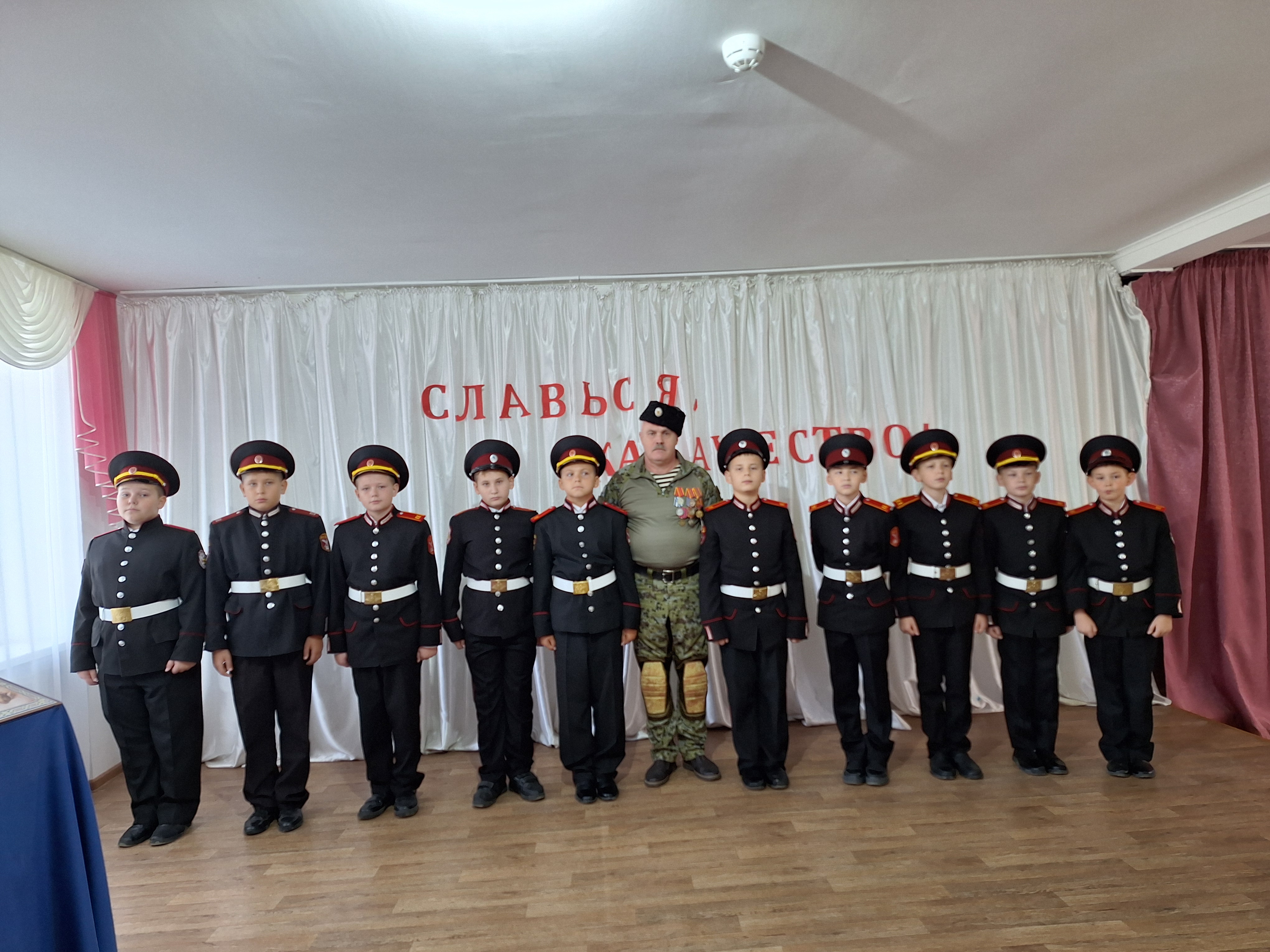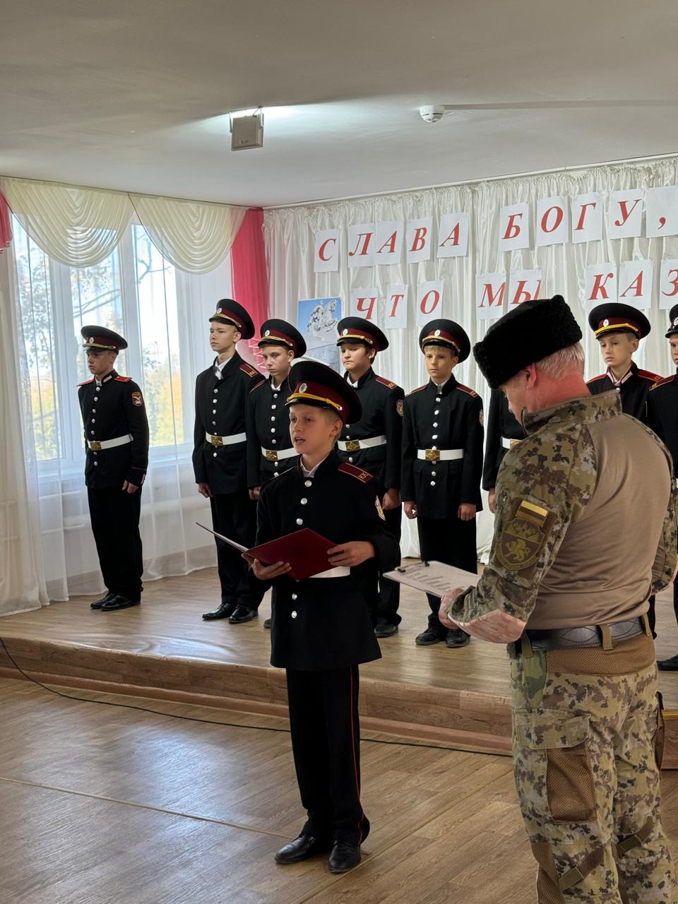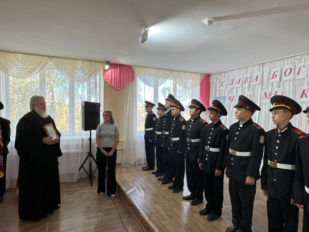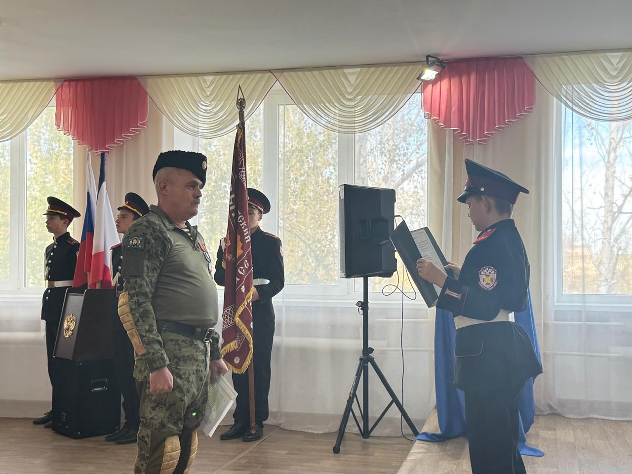Ребята пообещали с достоинством нести звание кадета, строго выполнять приказы командиров, дорожить честью казачьего класса, хорошо учиться, быть честным с товарищами и верно служить Отечеству.