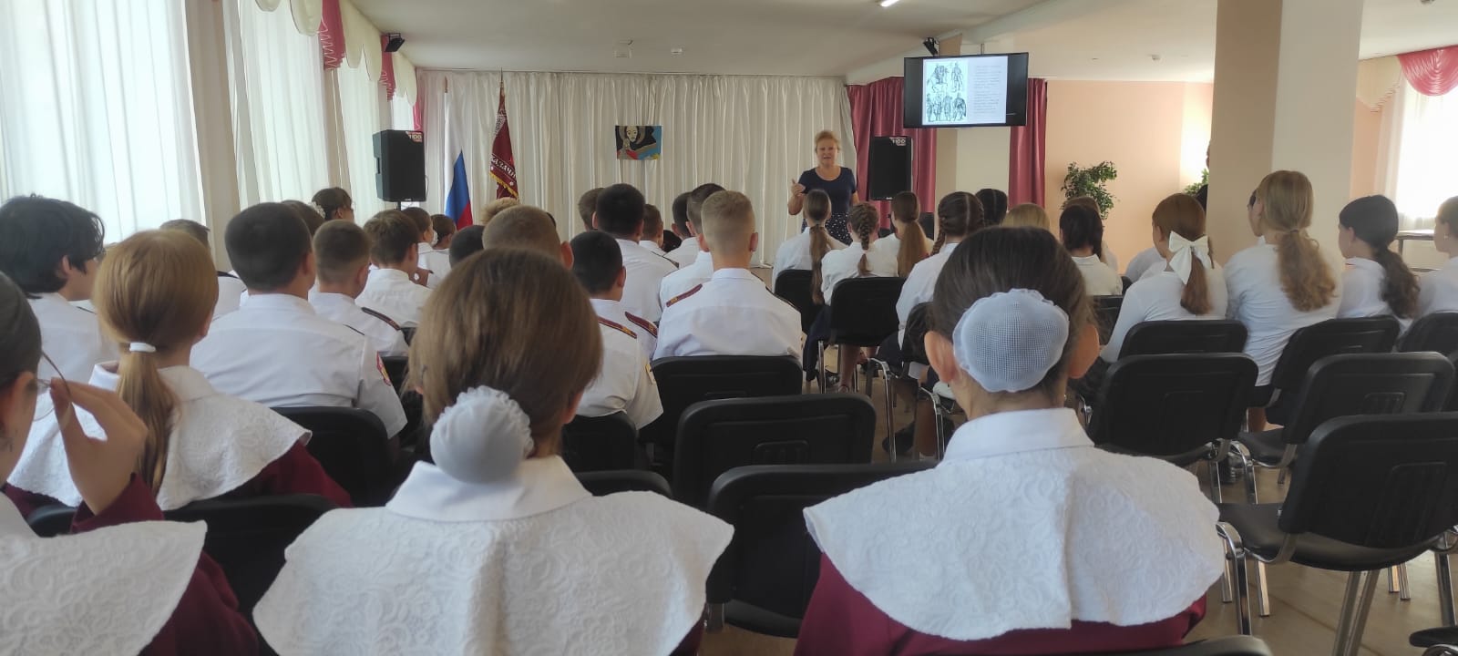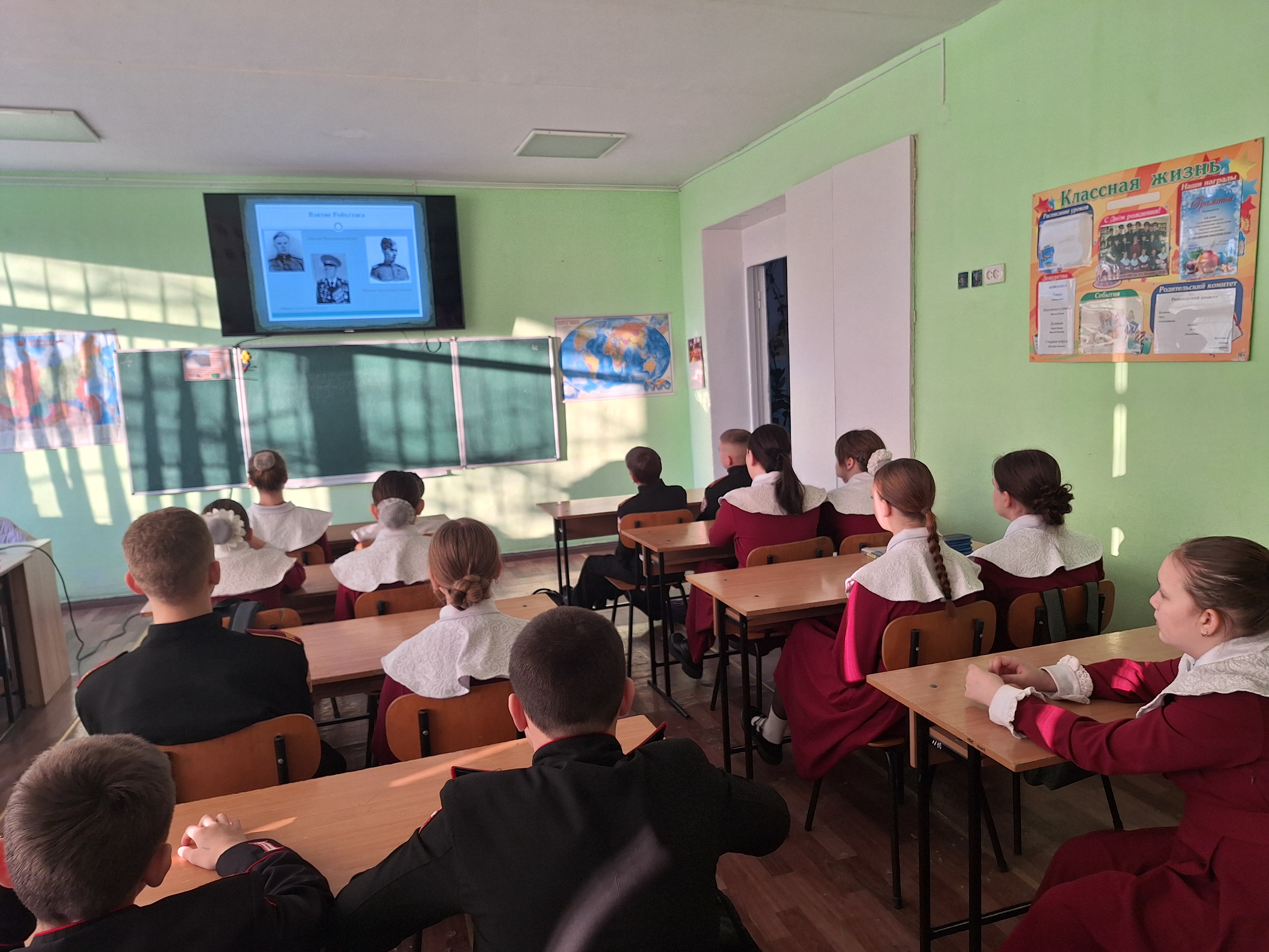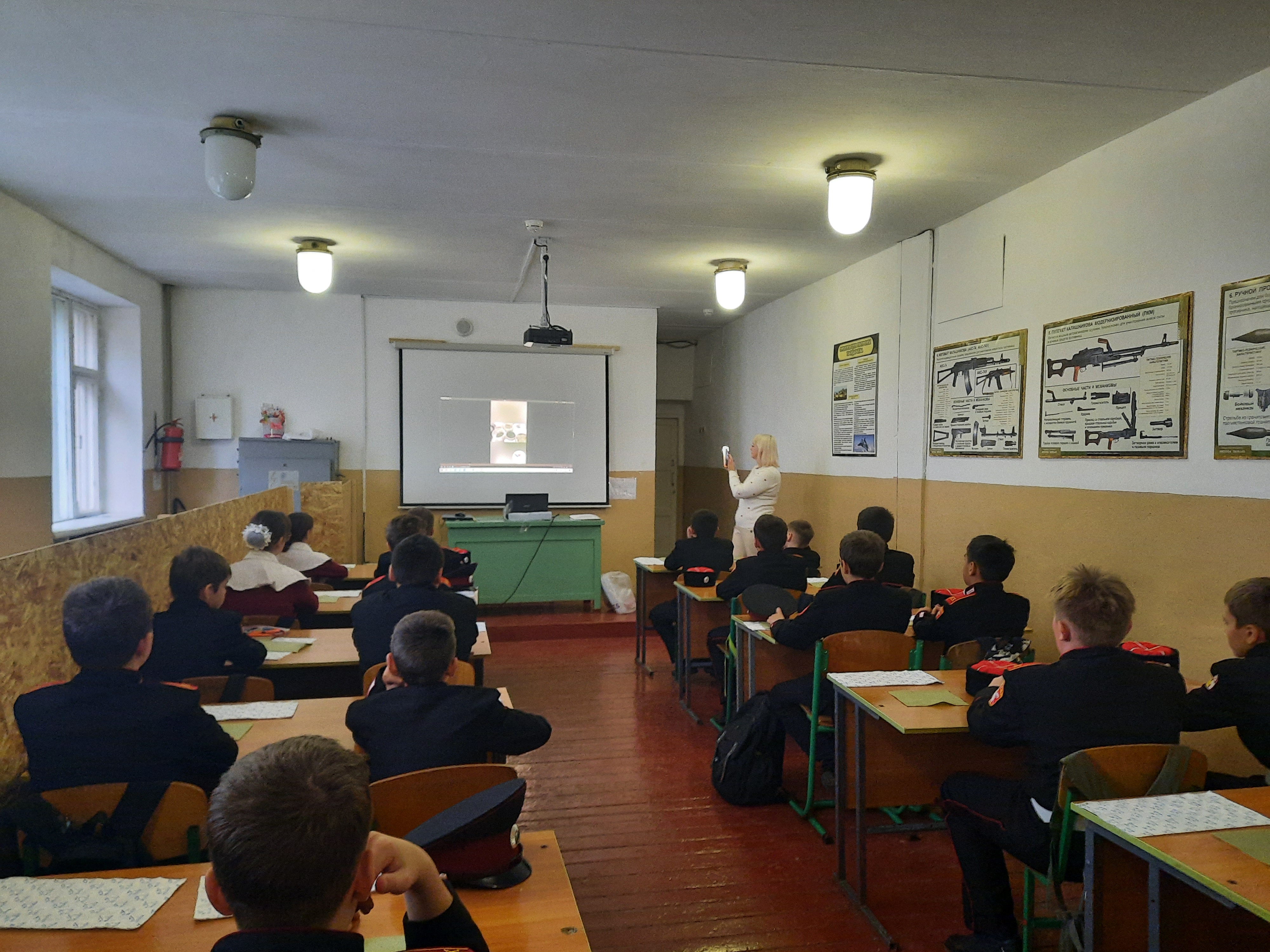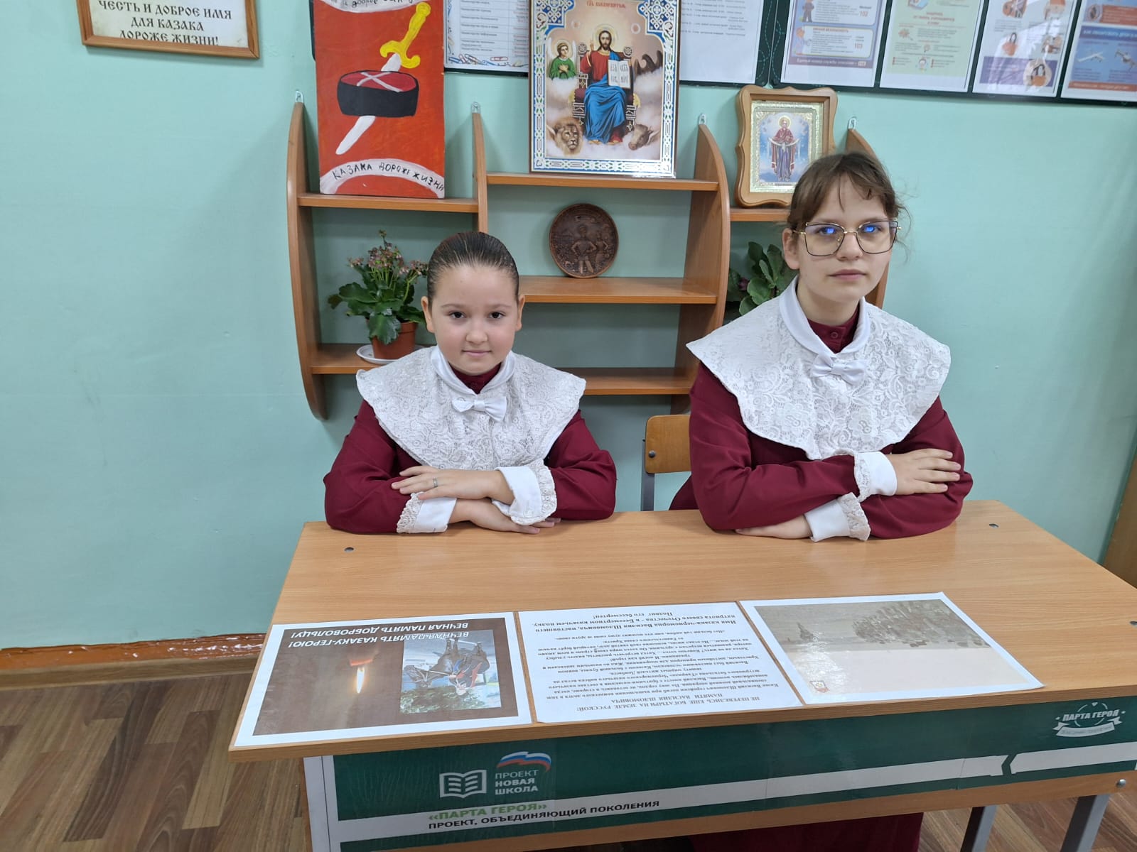 На уроке в 6-К кадетском казачьем классе «Православные святыни: иконы», учитель – Малашенко О.С. рассказала ребятам историю появления иконы «Спас нерукотворный». Кадеты, работая в группах, подготовили рассказ об иконах «Покрова Пресвятой Богородицы» и иконе Божией Матери «Донецкая», у которой особая миссия в нашей стране. Урок закончился видеороликом о паломничестве Донецкой иконы в Курскую область в условиях Специальной военной операции.