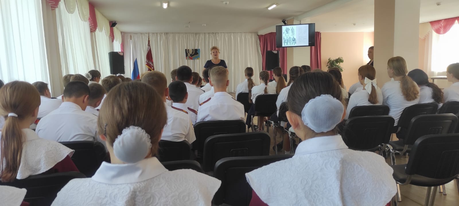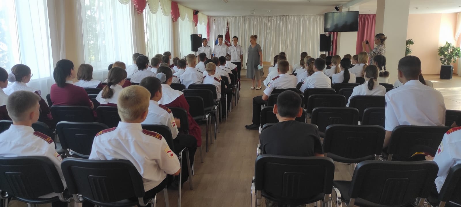 Сегодня кадеты 9-К и 9-М казачьих классов МБОУ «Табачновская СОШ имени Н.Г. Сотника» Бахчисарайского района приняли участие в