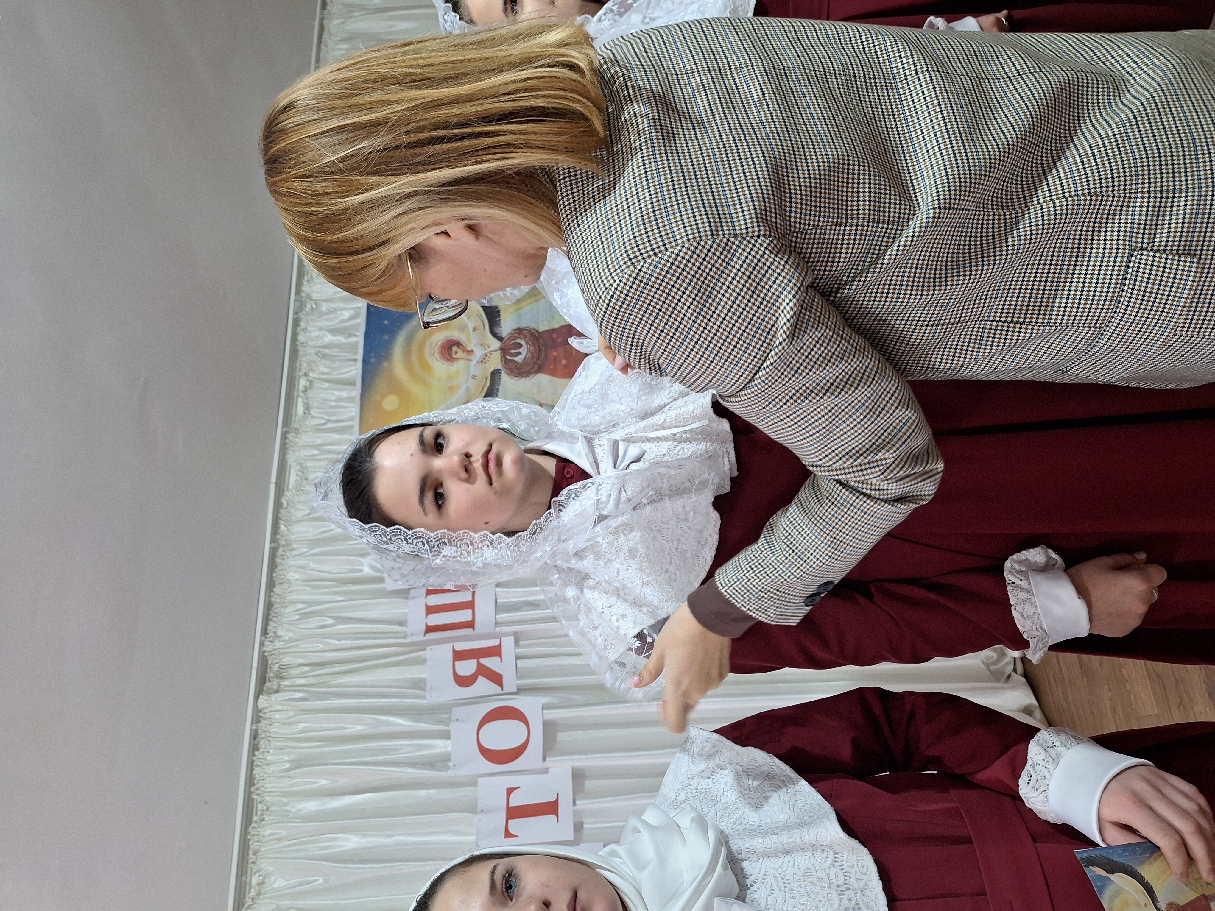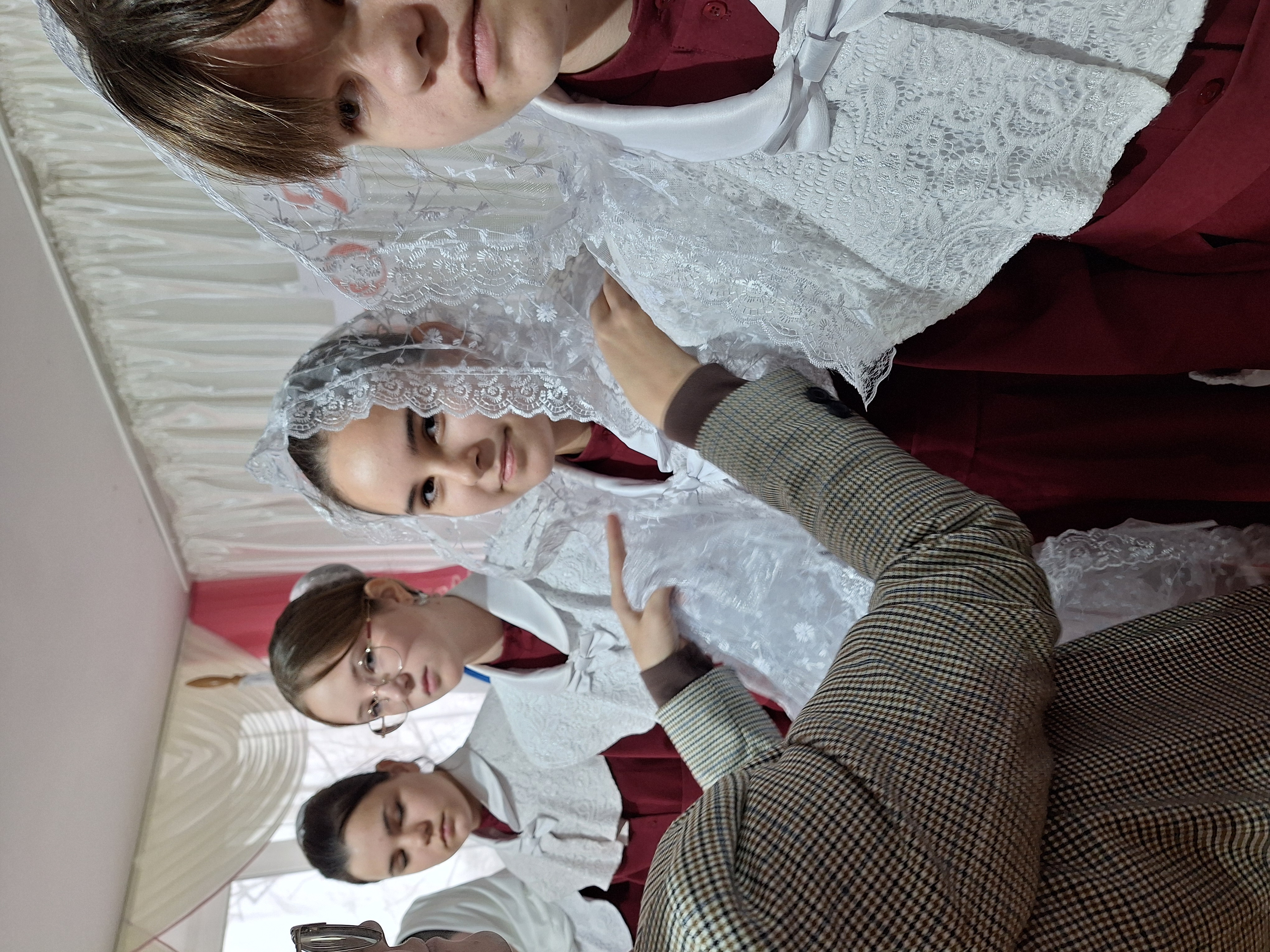 Классные руководители Клочко В.А. и Марченкова А.Ю. подарили девочкам белоснежные воздушные платки. Когда девочкам захочется побыть в тишине, обратиться с молитвой к Богу, они смогут прийти в храм. «Дорога в храм для наших казаков и казачек всегда открыта»- сказал настоятель храма Архистратига Михаила протоиерей Иаков. Он тепло поздравил детей и родителей, пожелал светлых дней и благополучия.