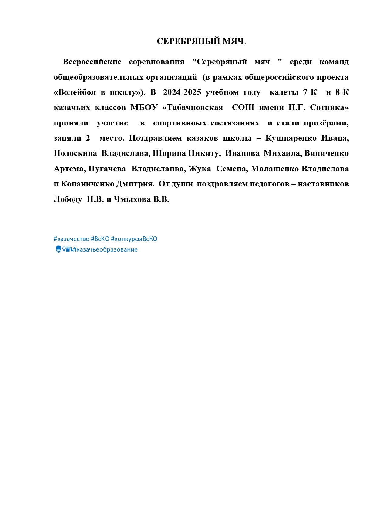 МБОУ «Табачновская СОШ им. Н.Г. Сотника»