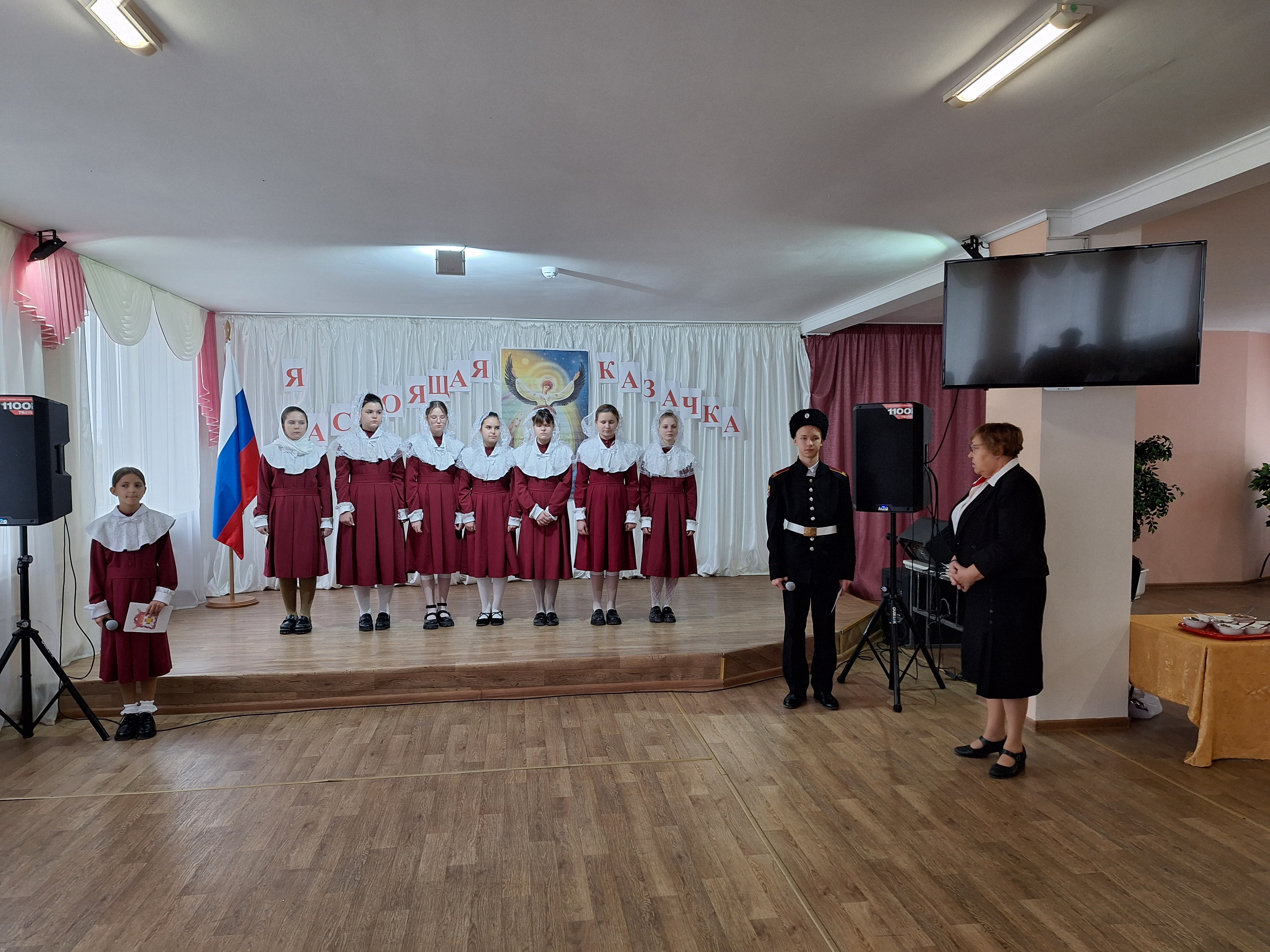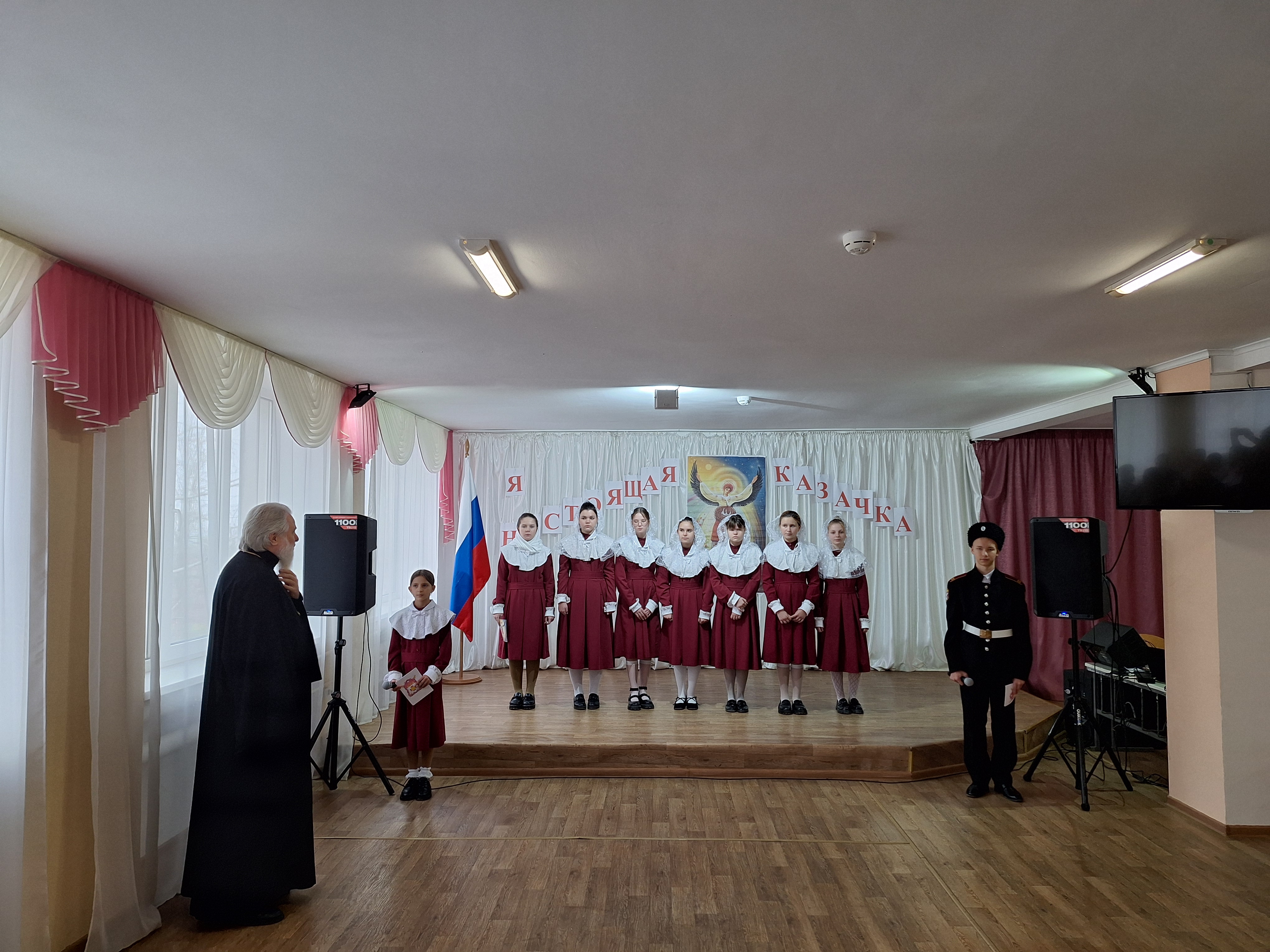 Праздник прошел в атмосфере любви и тепла. Сердечно маленьких казачек поздравили Воронина С.Э., протоиерей Яков Шепельский, директор школы Зюбина В.Н. Медушевский А.Н. поздравил присутствующих детей и гостей с праздником и прочитал свои стихотворения, рожденные на полях сражений СВО.
