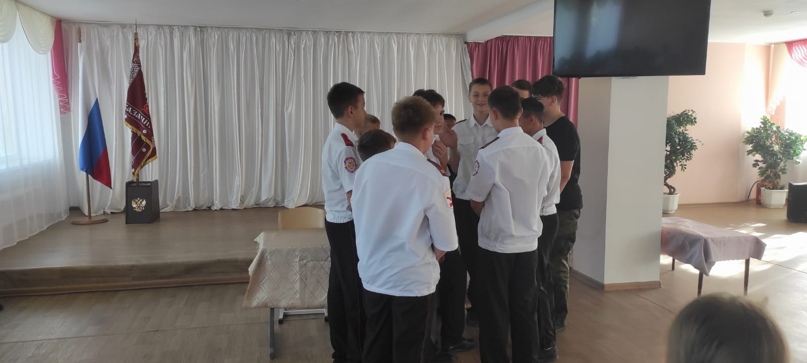 Так как высшая власть у казаков принадлежит кругу и только кругу, а в период между кругами – атаману, на общешкольном казачьем круге был выбран атаман. Им стал Кушнаренко Иван, кадет 8-К класса, помощником – Подоскин Владислав, кадет 8-К класса.