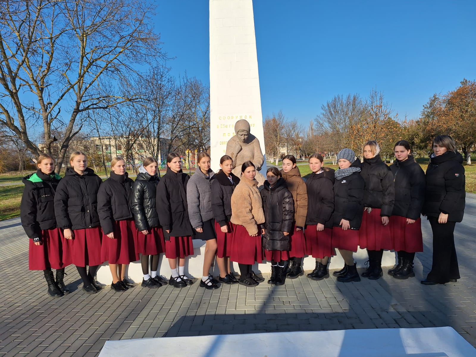 Кадетские классы МБОУ «Табачновская СОШ имени Н.Г. Сотника» приняли участие в митинге у Обелиска Славы в парке села.