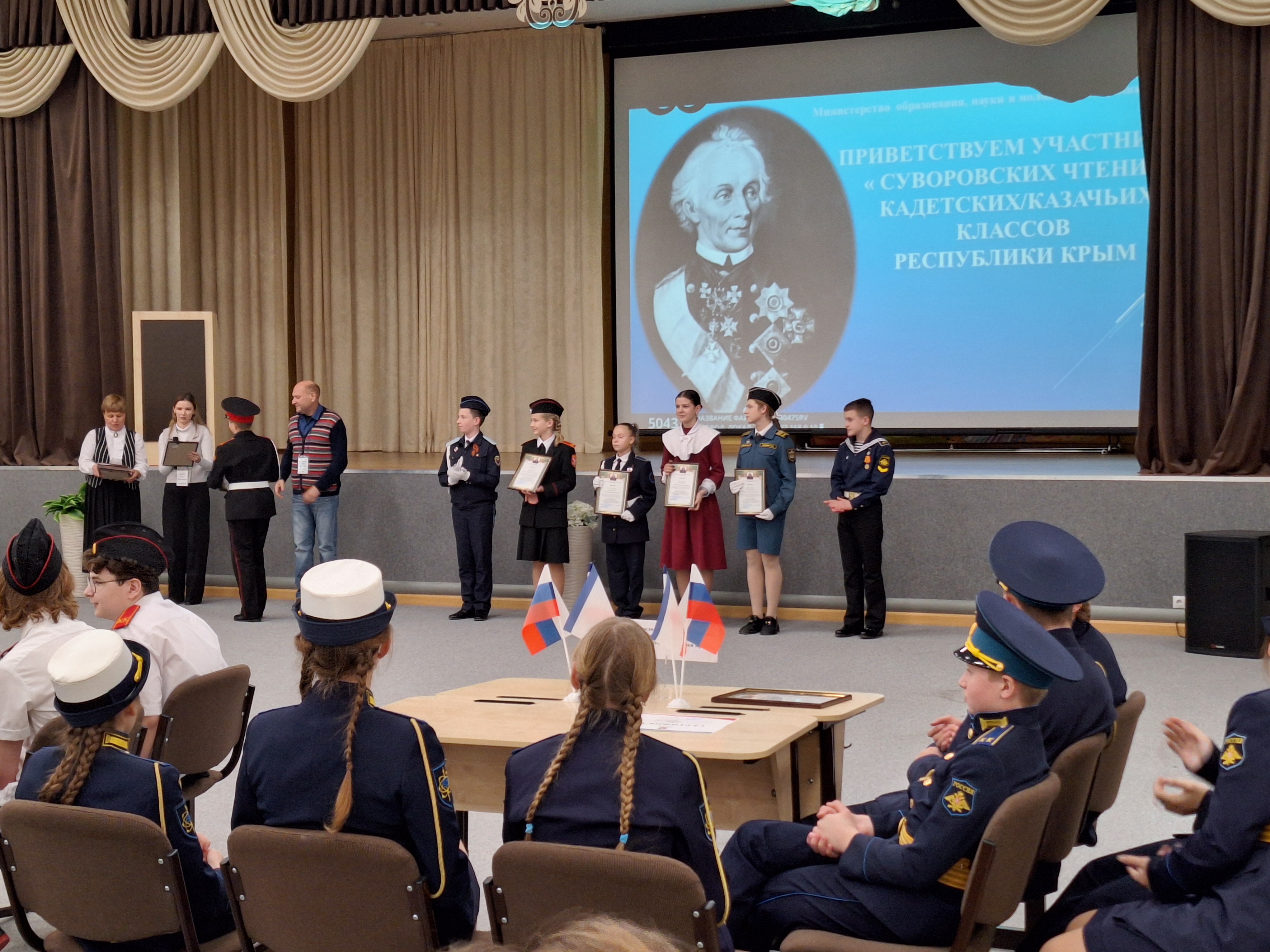 В кадетских казачьих классах МБОУ «Табачновская СОШ имени Н.Г. Сотника» Бахчисарайского района для ребят проведены классные часы. Кадеты узнали о детстве А. В. Суворова, его желании продолжить воинскую династию семьи, о победах на поле сражения.